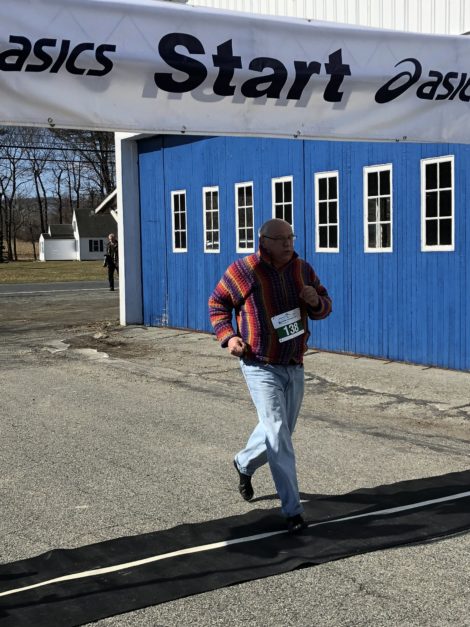 On Sunday morning, April 8, in weather cool enough to discourage all but the hearty, some 80 participants turned out on the runway of the airport to register at 8:00am and to start the race at 9:00. This is the 6th annual holding of this event, but the first at the airport, and the consensus was that this new route was the best so far – from the end of the runway, to Seekonk Cross Road, to Locust Hill Road, to Pumpkin Hollow Road, to Egremont Plain Road and back to the finish line at the airport. The panting runners and walkers, all of whom crossed the finish line (some sooner than others), were enthusiastic about the beauty of the route. Also, as they crossed the finish line, they were greeted by cheers and hugs and restorative refreshments provided by in-kind sponsors.