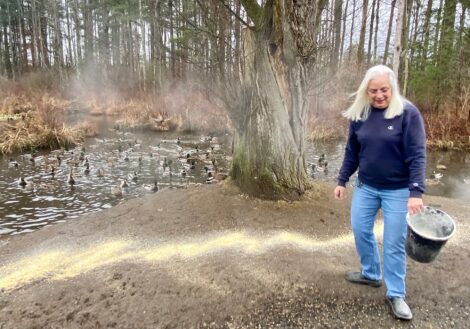 But, most of all, Andrea’s fondness for the property stems from the throngs of ducks residing on the pond, a tally she estimates to be about 200 waterfowl. “I’ve been feeding the ducks for 40 years,” she reminisced.