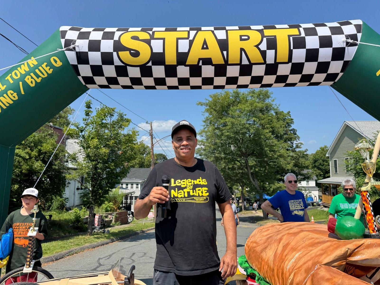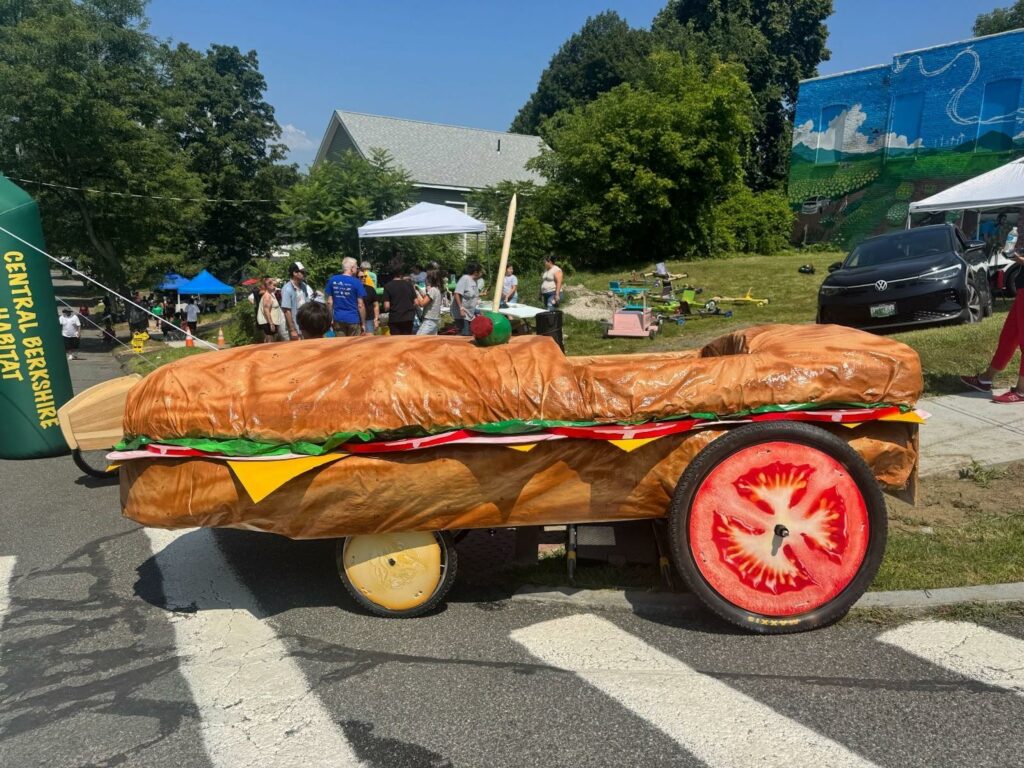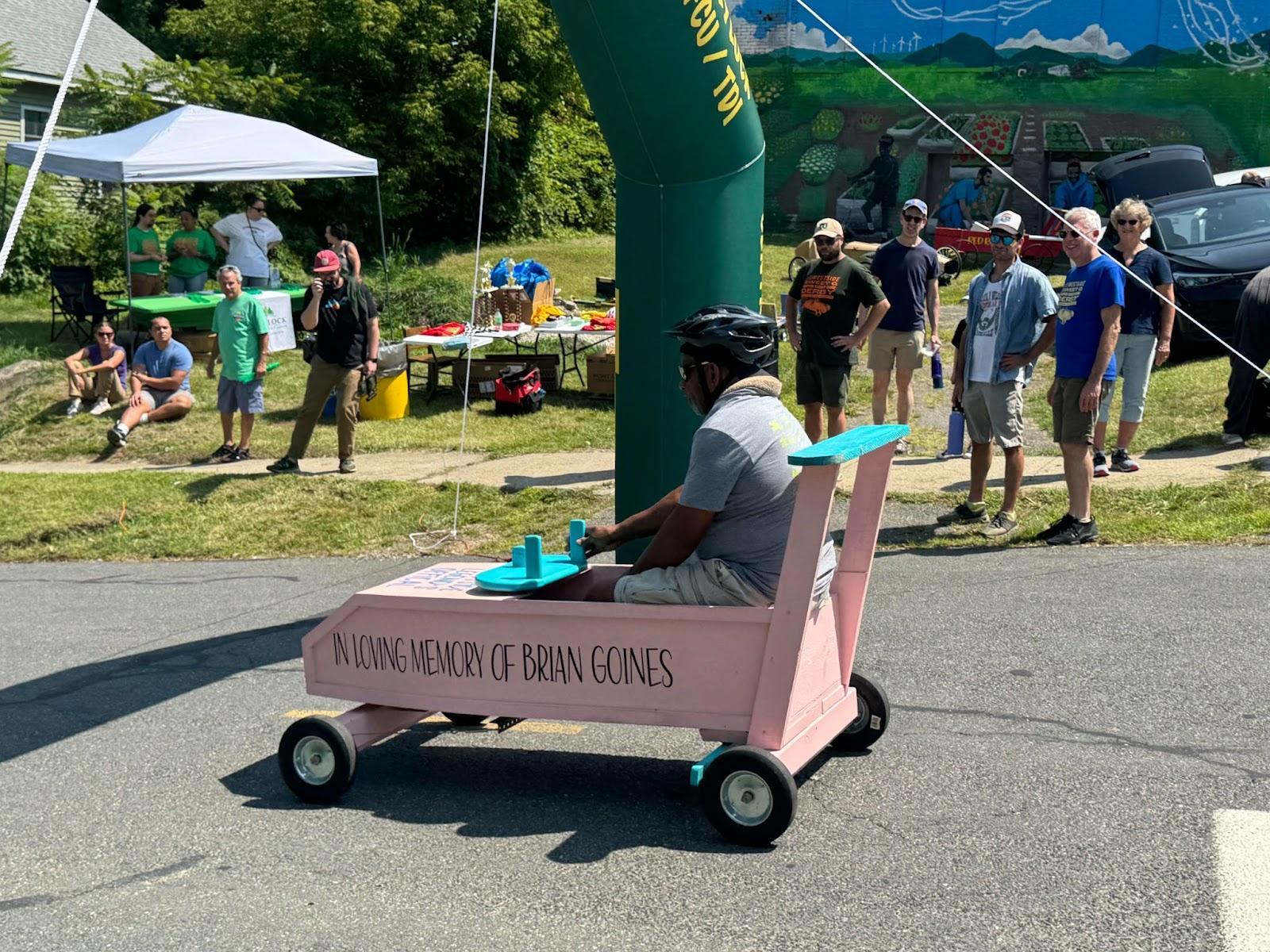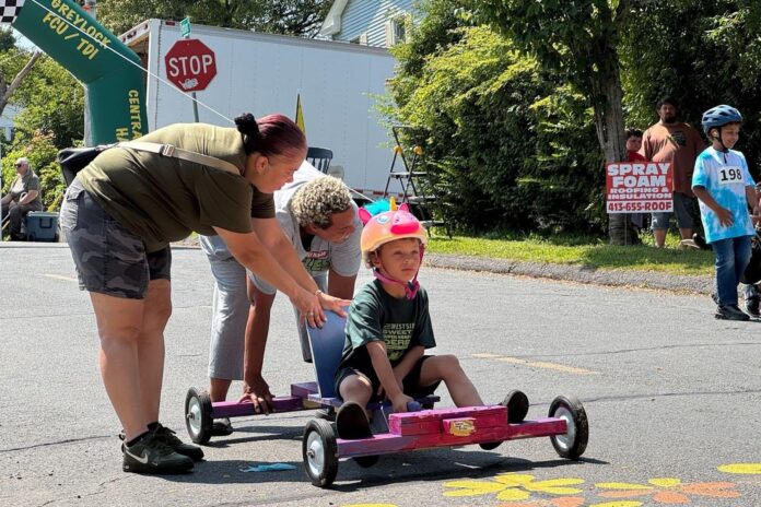 From 12 to 4 p.m. this Saturday, August 9, babies, grandparents, friends, aunts, exes, cousins, and “cousins” gathered at the junction of Robbins and Columbus avenues in Pittsfield for the fourth annual Westside Sweet G Super Soap Box Derby. The day was hot, exceedingly so, and the crowd was smaller than last year’s. If not the total culprit, the heat was a compelling scapegoat.