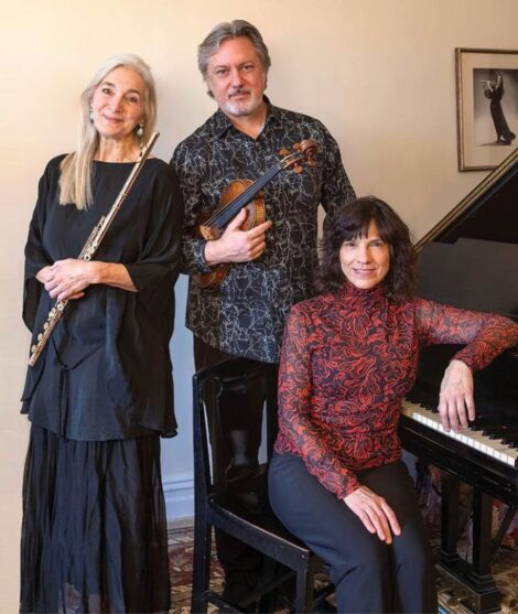 Trio Calore will perform a concert of music written for flute, violin, and piano in the New Marlborough Meeting House. The composers are J.S. Bach, Mélanie Bonis, Franz Doppler, Johann Kuhnau, and Nino Rota.