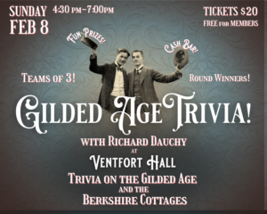 Lenox— On Sunday, February 8th from 4:30 p.m. to 7 p.m., Ventfort Hall Gilded Age Mansion & Museum presents beloved Berkshire docent Richard Dauchy for a spirited game of Gilded Age trivia.