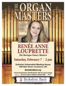 Housatonic— On Saturday, February 7th at 2 p.m., Berkshire Bach Society presents master organist Renée Anne Louprette on the 1893 Johnson Organ at the Unitarian Universalist Meeting House in Housatonic to open its 2026 Organ Masters series.