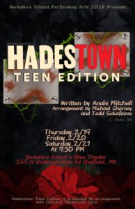 Sheffield— On February 19th, 20th, and 21st at 7:30 p.m., Berkshire School’s Theater and Music Department presents the spellbinding, Tony Award®-winning musical “Hadestown: Teen Edition.”