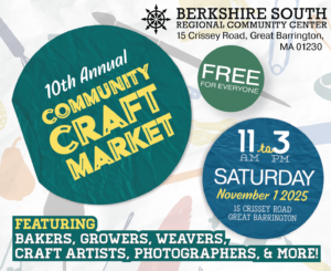 Great Barrington— On Saturday, November 1st from 11 a.m. to 3 p.m., Berkshire South presents its 10th annual Craft Market.