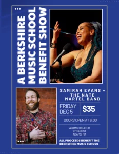 Adams— On Friday, December 5th at 6 p.m., Berkshire Music School and Adams Theater present Samirah Evans and Nate Martel in concert.