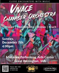 Great Barrington— On Sunday, December 7th at 4 p.m., Close Encounters With Music presents the Vivace Chamber Orchestra at The Mahaiwe Performing Arts Center.