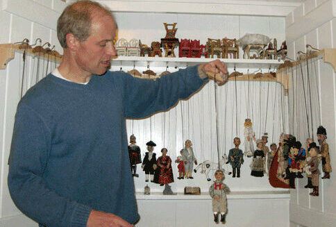 Sprague, who has appeared annually at Ventfort Hall with his “behind the scenery” mastery, has been a puppeteer since childhood. He inherited a collection of 60 antique Czech marionettes, each about eight inches tall, that were assembled by his great-grandfather, Julius Hybler. Sprague has been a set designer for such motion pictures as “The Royal Tenenbaums” and Scorcese’s “The Age of Innocence,” as well as for theater productions, many at Shakespeare & Company.