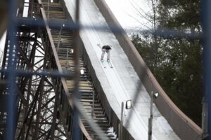 The highlight of the weekend is the prestigious Eastern U.S. Ski Jumping Championships. Anticipation fills the air as ski jumpers prepare for their moment, waiting on the bar with unwavering focus. In a matter of seconds, they launch into flight—helmets leading, arms streamlined, and bodies expertly positioned for maximum speed and aerodynamics. Each jump is a testament to the athletes’ balance, flexibility, and nerves of steel, all displayed in a breathtaking 20-second descent down the hill.