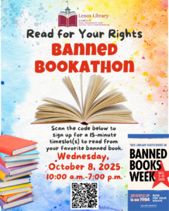 Lenox— On Wednesday, October 8th, in celebration of Banned Books Week, the Lenox Library will host an all-day “Banned Bookathon.”