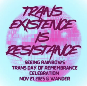 seeing rainbows presents ‘EXISTENCE IS RESISTANCE,’ its second annual seeing rainbows Transgender Day of Remembrance event at Wander