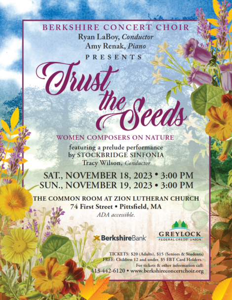 Pittsfield— On November 18th and 19th at 3 p.m., Berkshire Concert Choir presents its fall concert, “Trust the Seeds.”