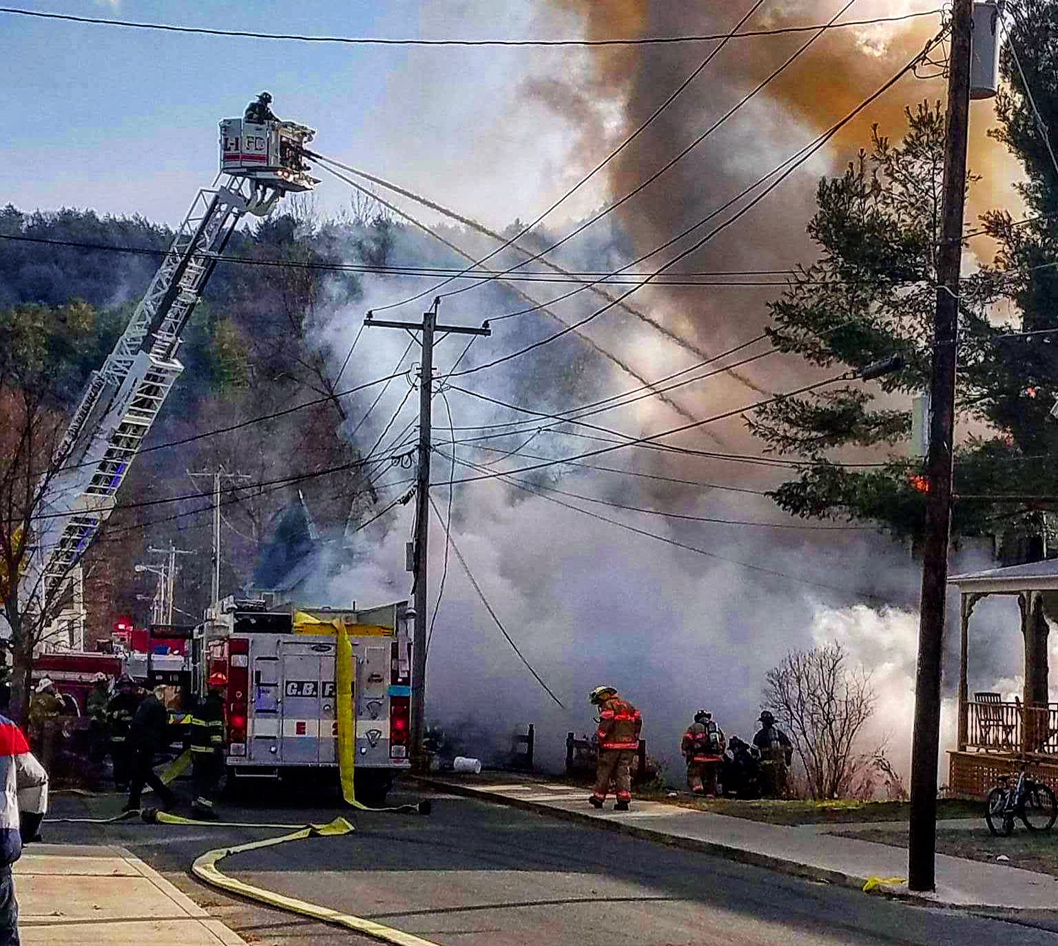 Saturday’s fire created chaos downtown just as the annual Holiday Stroll was about to begin. At around 3:30 p.m. the fire was thought to be “under control” according to the dispatch radio. In addition to Great Barrington firefighters, crews from Sheffield, Egremont, Monterey, Stockbridge and Lenox, and Hinsdale’s rehab truck also responded.