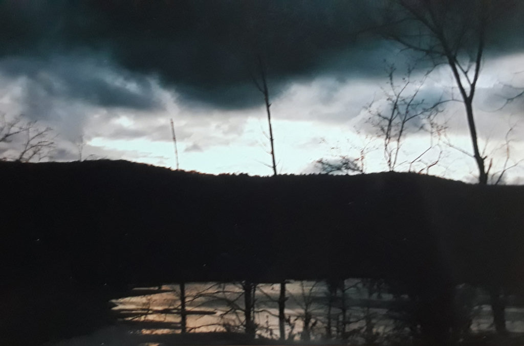 However, the October sky is also the most mutable: tornadic black one minute, blown to white billows the next. Gray and lowering at one glance, rent by blue at the next.
