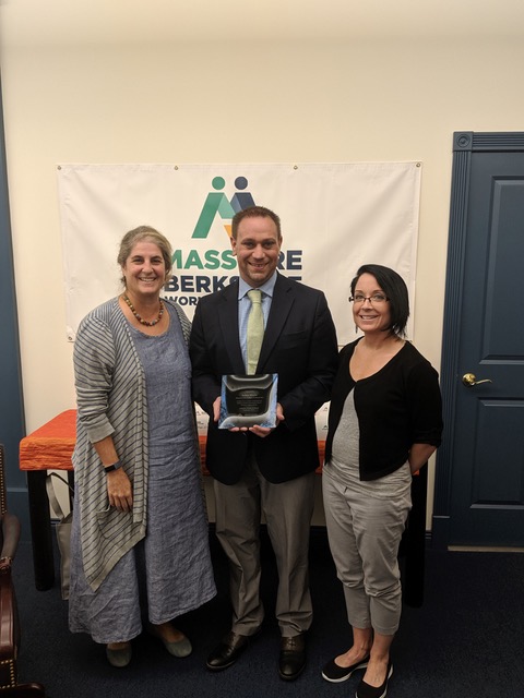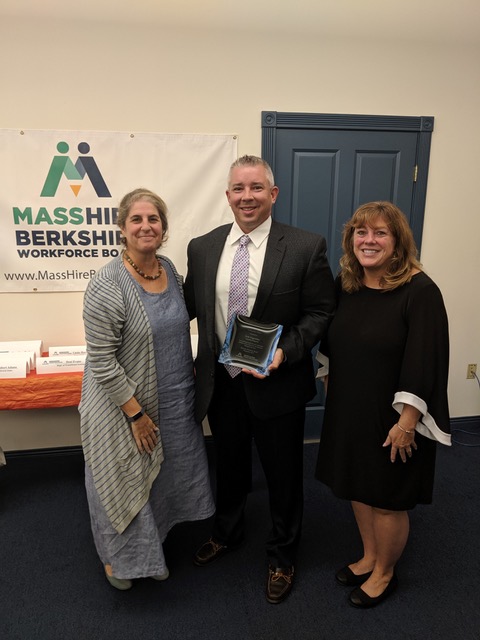 Berkshire Workforce Board President Eva Sheridan, Erik Ungewitter and Heather Boulger. Photo courtesy Berkshire Workforce Board Joshua Mendel, director of recruitment and outreach for MCLA’s graduate and continuing education division received the Workforce Professional Award. Mendel has led the Berkshire Compact Aspiration and Access Committee and has developed an array of college and career readiness events and programming for the region’s youth in grades K-12. He leads the charge with MCLA’s annual eighth-grade career fairs, the 10th-grade career expo, third- and sixth-grade college visits, the Dual Enrollment Summer Academy, and the development of certificate programs within local critical industry sectors.