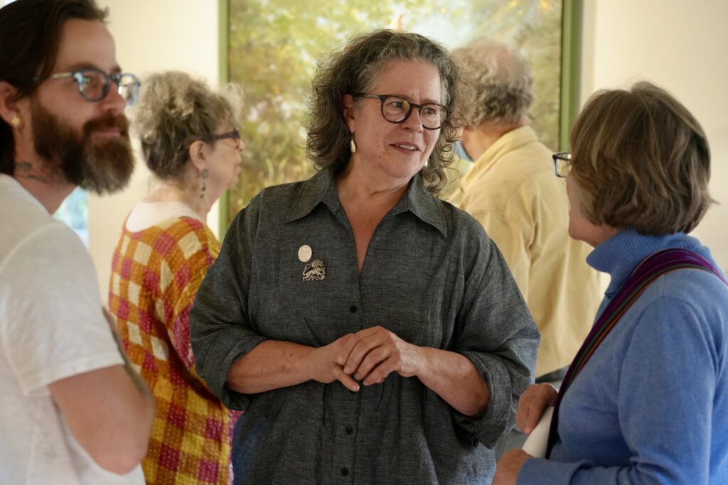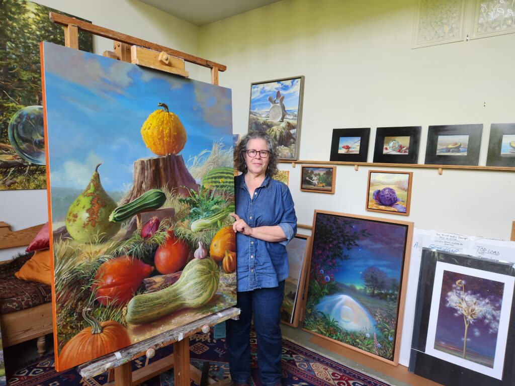In her gallery talk last Friday, Getsinger shared insights into her creative process when painting “Sylvanus” (‘of the forest or woods’) and other works. “I see an object that intrigues me and want to explore it more,” she explained. “Sometimes there’s a tone I hear, like a clear bell sound, that leads me deeper. And then I let my mind wander… It’s so much fun to take reality and see what you can do with it!”