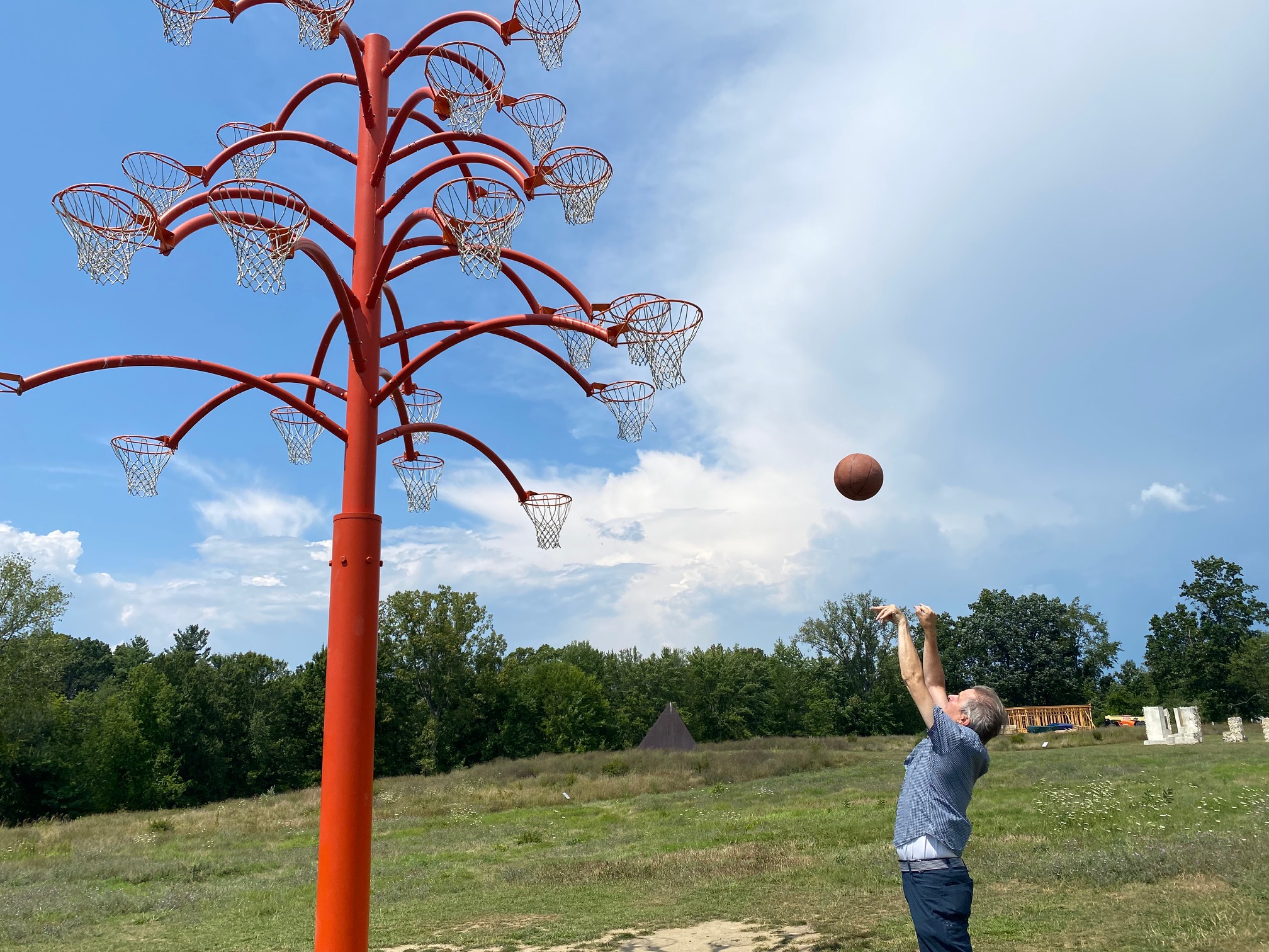 We have 120 acres with between 63 and 65 pieces here at any given time. We move approximately three to four installations each year. Art Omi is unique because it is both a sculpture and architecture park. The architectural pieces tend to be the more interactive ones where visitors can walk in, walk on, and engage with the work. We wanted to provide a “flight of fancy” opportunity for architects where there was no client they needed to consider.