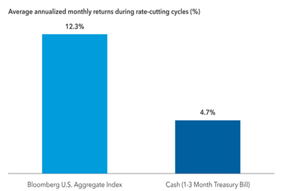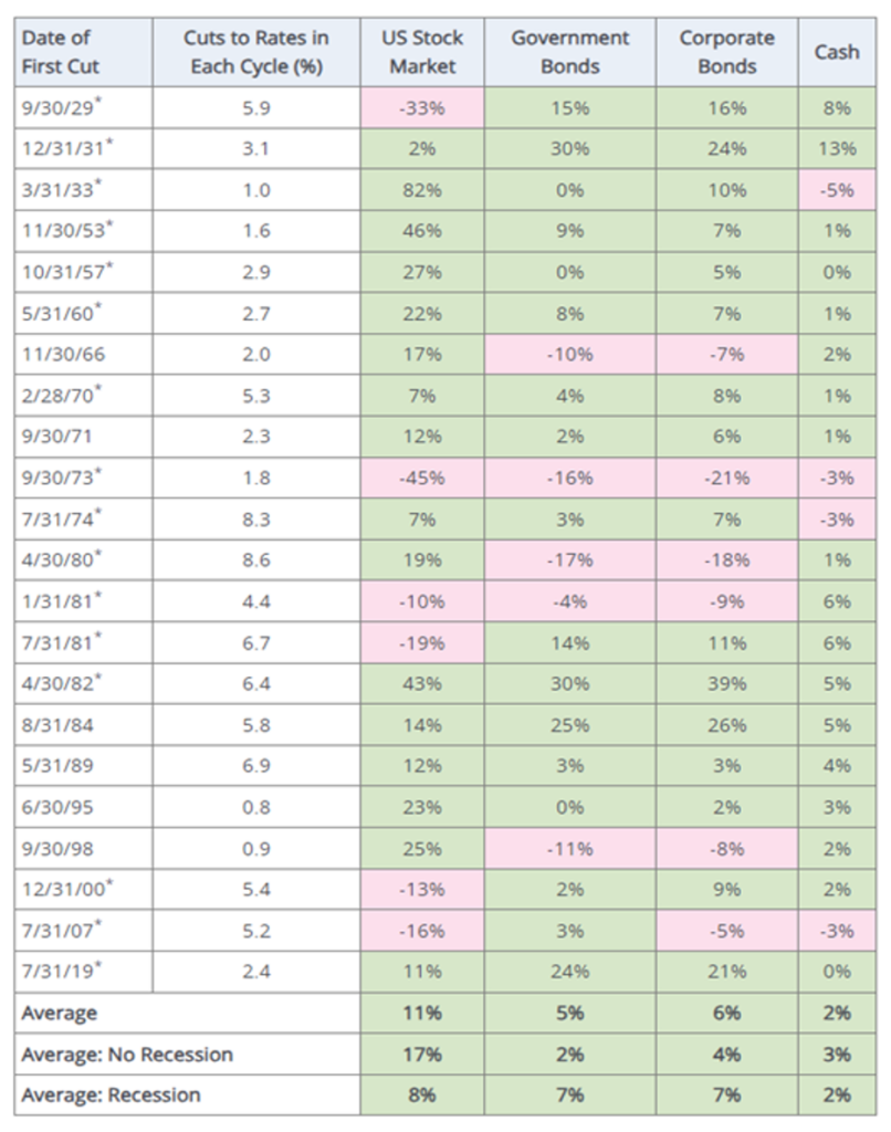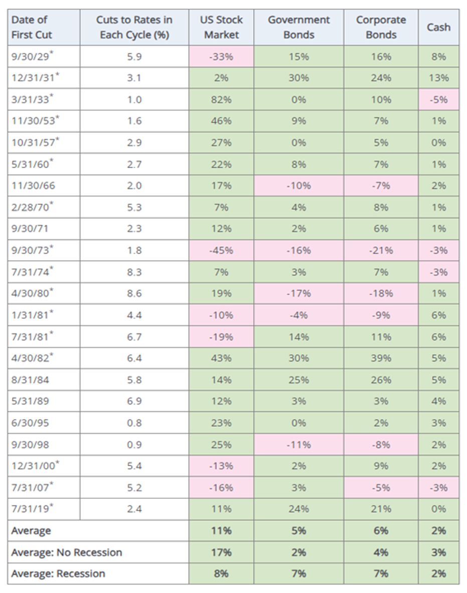 Bonds also performed positively after the start of an interest rate-cutting cycle over the last 30 years.