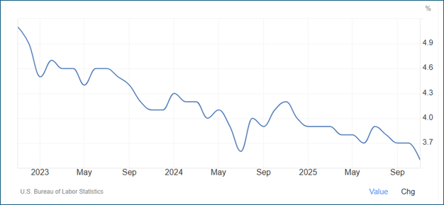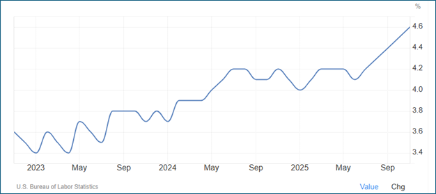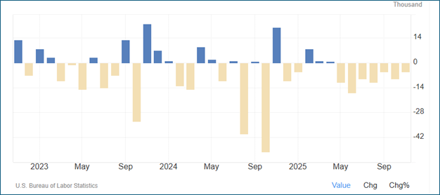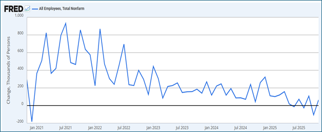 Payroll growth has already moderated meaningfully from the post‑pandemic surge. Most forecasters expect job gains in 2026 to be subdued—potentially near “stall speed”—with month‑to‑month volatility driven by hiring freezes, revisions, and the uneven impact of technology adoption across industries. Non-farm payrolls that had been growing by about 150,000 jobs per month are expected to slow to about 35,000 to 55,000 per month.