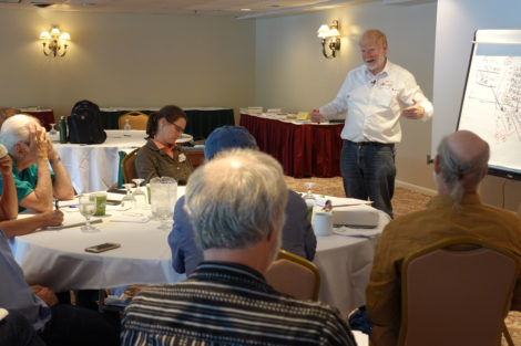 At the workshop, Jehne was joined by his colleague, Didi Pershouse, a noted author and board chair of the Soil Carbon Coalition. In a conference room at Lake Morey resort overlooking the rolling hills of southern Vermont, Jehne, armed with a whiteboard, markers, and an encyclopedic memory for statistics, presented a new vision for reversing climate change centered around restoring the hydrology of the planet — it’s a process he calls, “Regenerating Earth.”