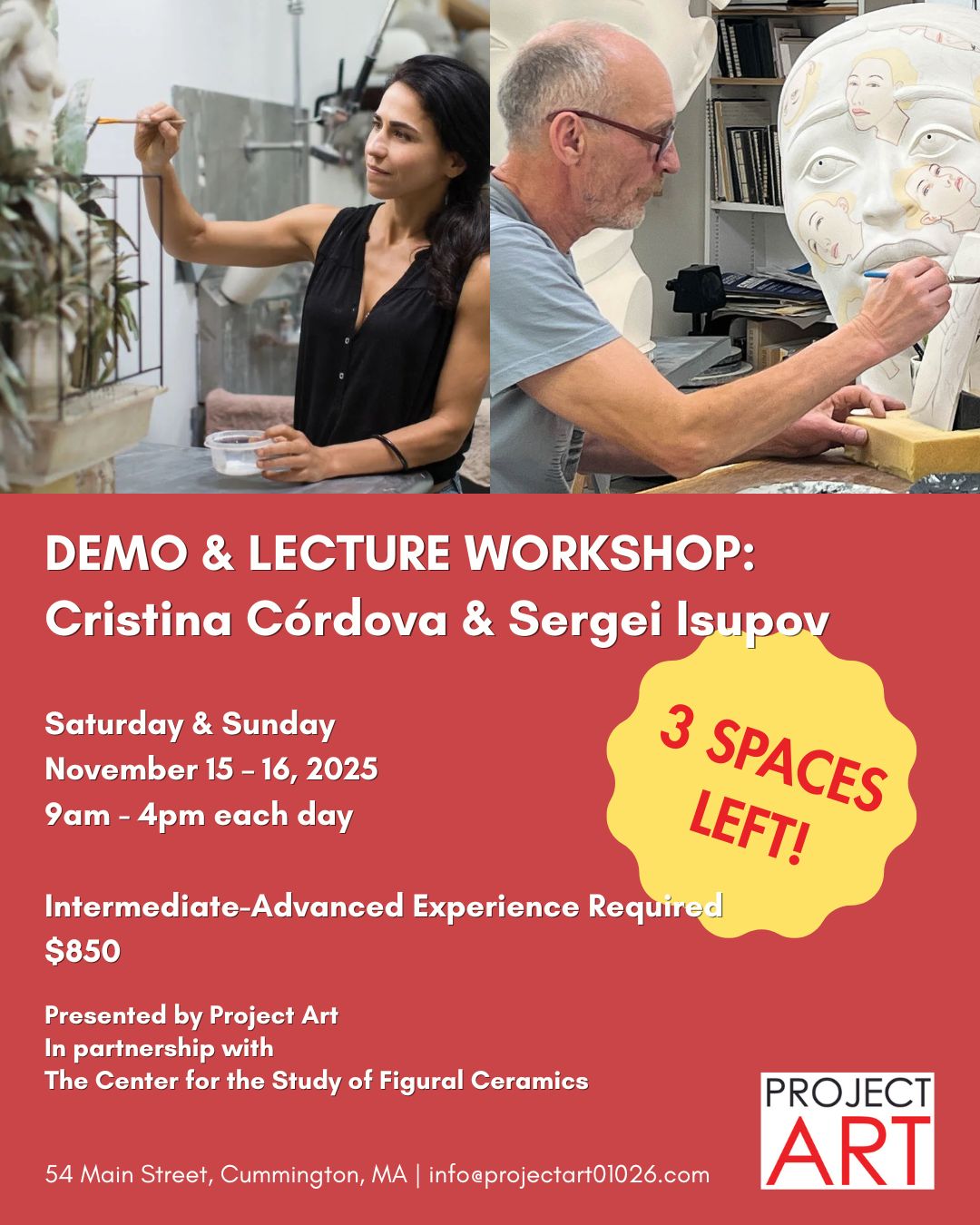 Project Art 54 Main Street, Cummington, MA, United StatesThis November, Project Art and The Center for the Study of Figurative Ceramics invite you into an immersive, two-day encounter with two of contemporary ceramics most influential figural sculptors: Cristina Cordova and Sergei Isupov. Participants are invited to spend the weekend observing the two artists’ alternating sessions, learn from their interactions and participate in active […]