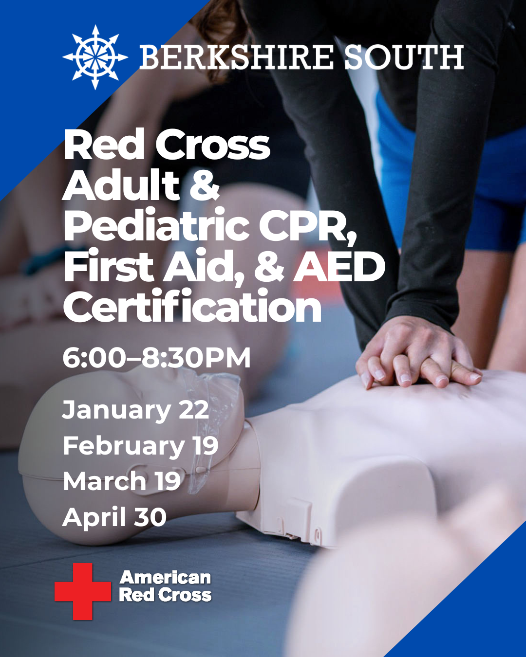 Berkshire South Regional Community Center 15 Crissey Rd, Great Barrington, United StatesThursday, March 19th, 6 – 8:30pm Registration Deadline: Thursday, March 12 Open to ages 13+ Learn valuable skills that could save a life. Our informative, hands-on courses include training in […]
