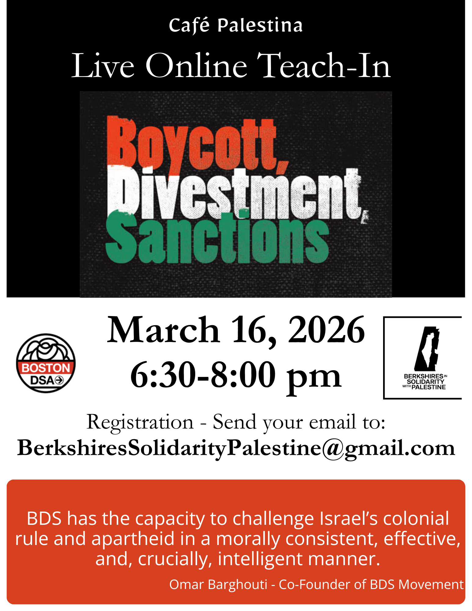 Cafe Palestina presents Live Online Teach-In on Boycott, Divestment, Sanctions