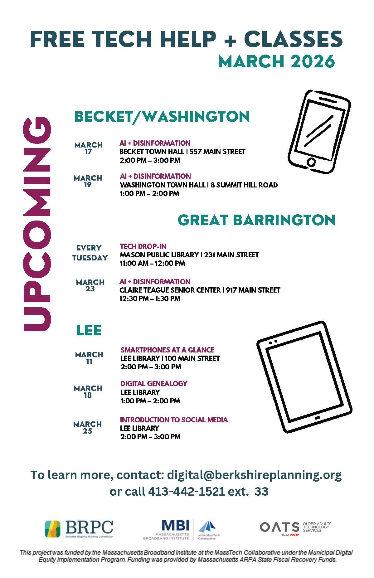 Mason Library, Great Barrington 231 Main Street, Great Barrington, MA, United StatesCome to the front room at Mason Library every Tuesday in March from 11 am to 12 pm to get FREE one-on-one help with your laptop, tablet, or phone from […]