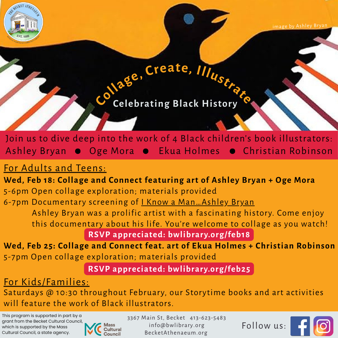 In celebration of Black History Month, join us to dive deep into the work of 4 children’s book illustrators and the art of storytelling through collage. Featured artists will include: Oge Mora, Christian Robinson, Ekua Holmes, and Ashley Bryan. Wed, Feb 18: Collage and Connect featuring art of Ashley Bryan + Oge Mora 5 to […]