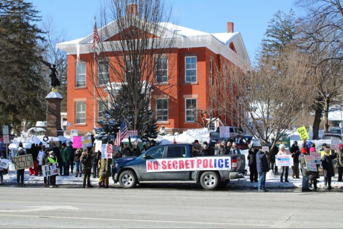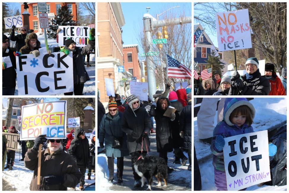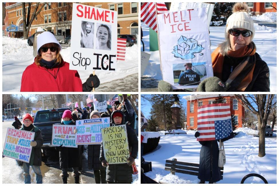 “I feel like the core problem of what’s happening now is that a bunch of ignorant bullies are using their power and their violence to destroy freedom of speech and to kill innocent Americans in the streets who are against these evil policies,” Heather Bilotta from Otis said. “We all have to keep showing up, coming out in brutally cold weather, and having our voice. We have to come together.”
