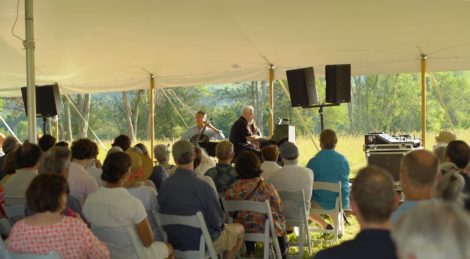 South Egremont — As guests walked up to the performance tent on Sunday, July 24, the late July breeze carried the soothing sounds of Emanuel Ax and Yo-Yo Ma warming up for the early evening concert and conversation, their second annual benefit for Greenagers held at April Hill Farm in South Egremont. A few feet away, sheep grazed, oblivious to the excitement building among the guests or the buzz of greetings emanating from the reception tent. As the last guests were being seated, Greenagers Board Chair David Sheehan gave welcoming remarks and the world-renowned artists prepared to begin. A bleating sheep got a playful cello reply, followed immediately by the opening piece, Mendelsohn’s “Song without Words, Op. 109.”