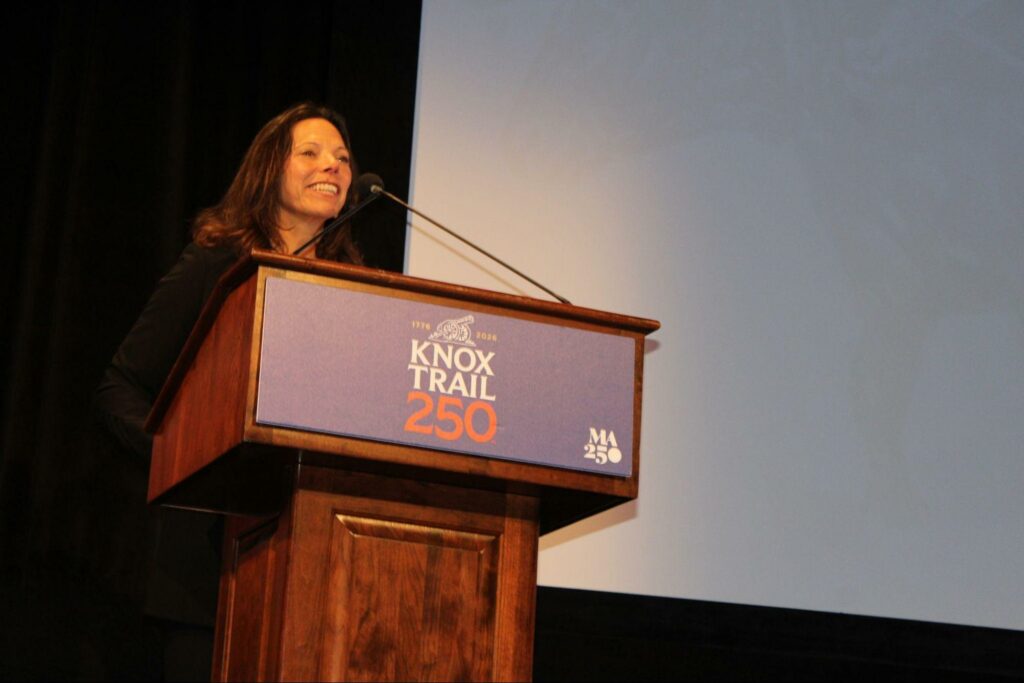 In her speech during the event, State Rep. Leigh Davis (D – 3rd Berkshire District) called Henry Knox “an unlikely hero.” “He was someone that rose up to the occasion,” she said. “He had a goal to travel 300 miles over two states and to do something that was a call to service. His story resonates to me because I think about individuals such as you [in the audience] realizing that we have the spirit here of the Berkshires. We had the first example of open resistance to British rule right here in Great Barrington. To me, the Berkshires has a revolutionary spirit. We are so grateful and fortunate to be celebrating this momentous occasion because this is really honoring someone that stepped into a role because he was called to serve, and that is something that resonates.”