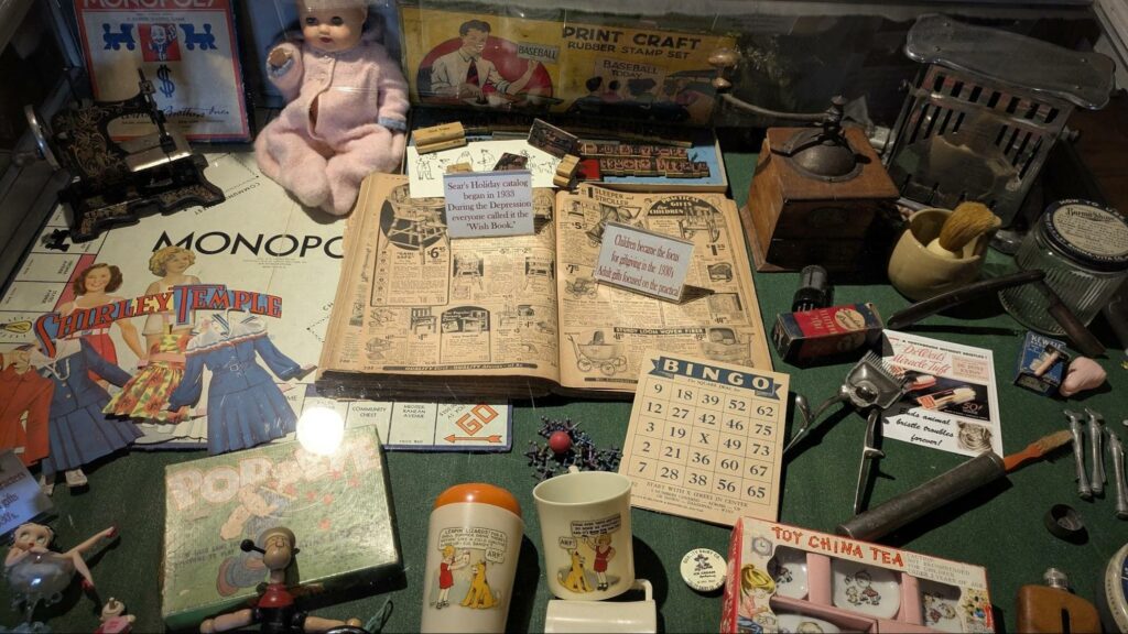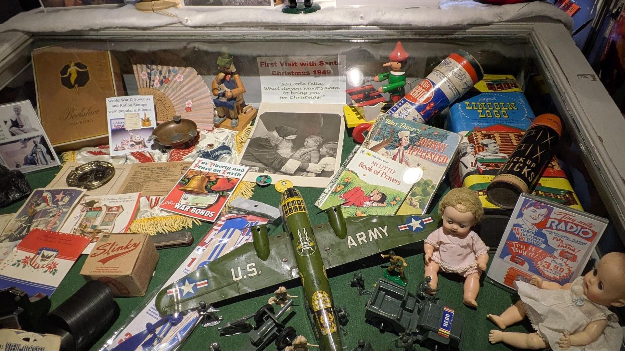 The exhibit includes antiques, artifacts, and toys tracing the history of the Christmas holidays from the Colonial period, Victorian era, through the 1950s, and into the modern era.