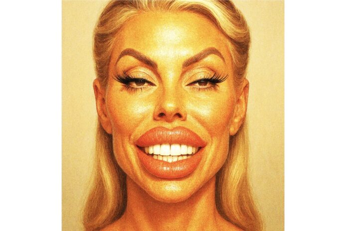 But Mar-a-Lago Face is a real thing. The features of Mar-a-Lago Face include an upturned nose; suspiciously slanted eyes; lips the size of pool noodles; straight, white teeth; Botox; silicone filler; cheek implants; spray tans; chin lifts; fake eyelashes; and manicured brows. Throw on plenty of concealer, mascara, lipstick, eyeliner, and blush, and presto! You, too, can look like a tarted-up gargoyle. “Exhibit A” would probably be the freakishly over-corrected Kimberly Guilfoyle, the otherworldly ex-fiancé of both Gavin Newsome and Donald Trump Junior.