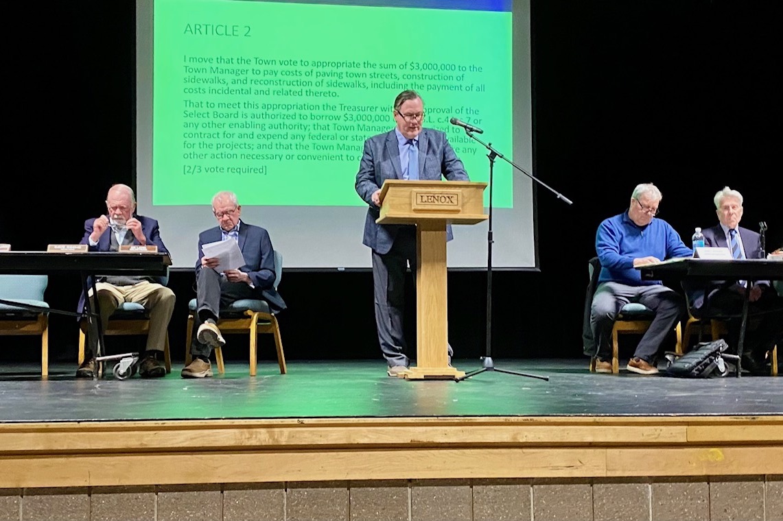On November 30, Lenox citizens unanimously approved a $3 million appropriation for street paving, sidewalk construction, and sidewalk repair. Presented by Select Board member Neal Maxymillian, the article addressed a request he said has spanned over the past six or seven years to push forward summer construction projects in the fall “so that the projects can be designed and bid during the wintertime.” He said the town could get more competitive bids now instead of waiting until the spring when contractors have already scheduled their warm-weather projects.