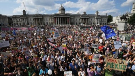 His aggressive intrusion into British politics only heightened the anger of a large portion of the British public as thousands of protesters massed on London’s Trafalgar Square in a day of demonstrations against Trump’s first official visit to the U.K., while smaller protests took place in other parts of the country.