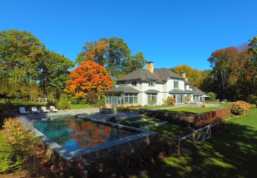 Privacy on 20 exceptional acres of sweeping, velvety lawns, stately trees, and stunning Southern views set the stage for this warm and inviting Connecticut classic. Custom architectural millwork adds distinctive character and style throughout this elegant home. Features of this beautifully appointed 12 room property include a Gourmet Chef’s Kitchen with breakfast room and Butler’s Pantry and elegant Living and Dining Rooms highlighted by wood burning fireplaces, detailed moldings, and water views. Additional rooms include a stunning paneled Library filled with warmth and comfort, a luxurious Master Suite which is generously scaled to include 2 Baths, and 6 additional, newly designed En Suite Bedrooms all with distinct style and detail. Gorgeous interior and exterior living spaces with sun-drenched Southwest exposure. Enjoy outdoor dining on the expansive bluestone Patio which provides various sitting areas, and two fire pits, all flanked by stone walls and beautiful gardens. Relax by the ozonated heated pool with bluestone surround and sweeping lake views. A true timeless treasure built for everyday living and grand entertaining.