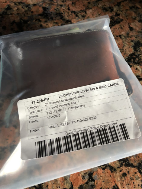 “Mr. Scribner,” said the officer the other end of the line. I was expecting information about an accident or some other emergency. “This is Sgt. Adam Carlotto of the Great Barrington Police Department. We have your wallet.”