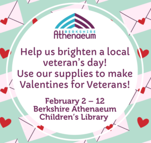 Through February 12th, drop by the Berkshire Athenaeum, located at 1 Wendell Avenue in Pittsfield, to make Valentines for Veterans. Stop by any time the library is open to make a Valentine for a local Veteran. All card making supplies are provided.