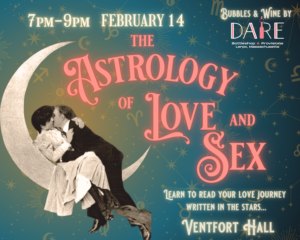 On Saturday, February 14th at 7 p.m., Ventfort Hall Gilded Age Mansion and Museum, located at 104 Walker Street in Lenox, presents ”The Astrology of Love and Sex” with Chelsea Gaia. How do Venus, Mars, the Sun, and the Moon influence your relationships? Was it meant to be, or was it fated to end? How can the stars explain the one who got away? Find out at this playful presentation in the ambiance of a Gilded Age library. Enjoy a cash bar of bubbles and wine by Dare Bottleshop.