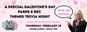 On Thursday, February 19th at 7 p.m., Bennington Theater, located at 331 Main Street in Bennington, presents A Galentine’s Day “Parks & Rec” trivia night with Jim Thatch. This fundraiser supports the Take Care Project, which works to advance local menstrual and hygiene equity. Delicious refreshments will be available.