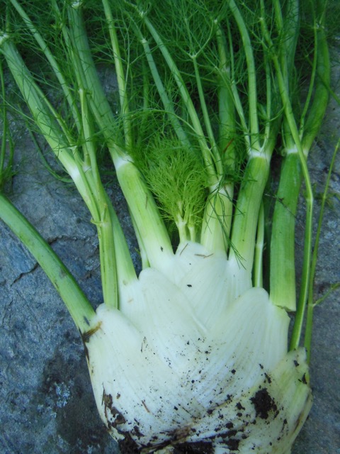 Shear swollen fennel bulbs from their considerable roots, which, when left behind to decompose in place, leave the soil intact. Pull the bulb’s pleated form apart into shells to stuff with a finely chopped salad, or dice and cook with onions to transform fennel into a smooth, white, mildly licorice-flavored soup–simply scrumptious.