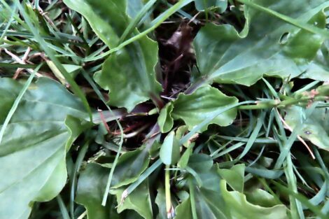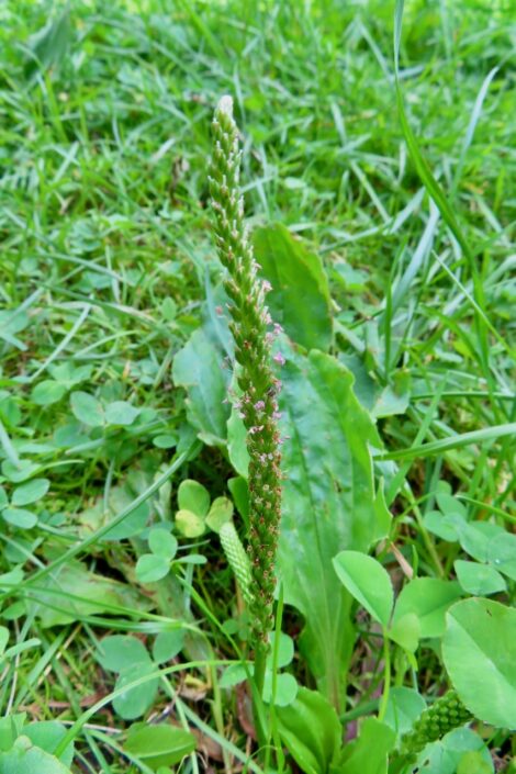 The class had begun with plantain. As participants in the Natural Plant Communities program gathered, we looked at our feet, and the first, most ubiquitous plant we noticed was plantain. I assumed, with utmost confidence, that it was common plantain, Plantago major, a weed of European origin. Ted interjected, “Rugel’s plantain, Plantago rugelii, native to New England: Notice the base of the stems are red.” My mouth was agape as I never had experienced. I felt a sideways blow to my head. My eyes opened wide. And yes, the flower stalk bore pinkish florets.