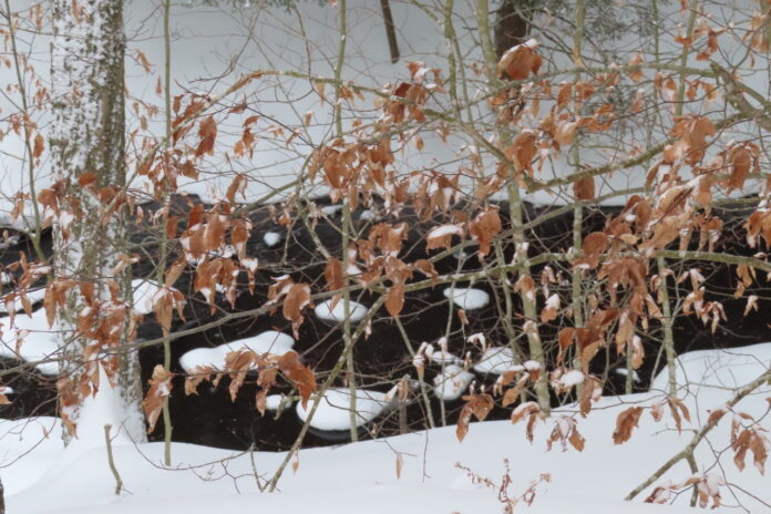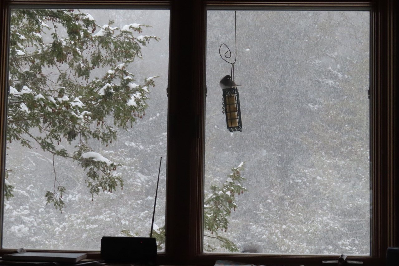 Winter at its most visually captivating includes a diversity of birds winging in for high-energy food at my most modest of bird feeders. (See below.) As I write, a male downy woodpecker fends off an aggressive male slate-colored junco, aka “snowbird.” Tufted titmice wait for a turn, seemingly patiently, in a nearby hemlock tree. Red-bellied woodpeckers and equally large hairy woodpeckers have feasted and flown away.