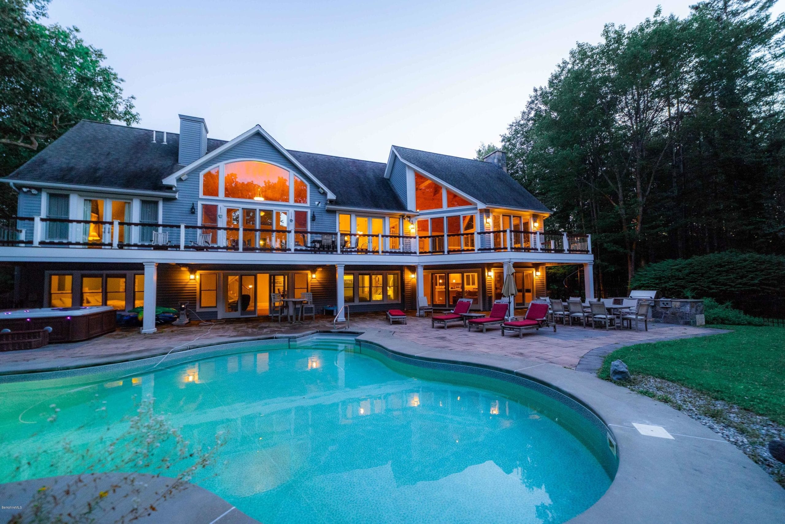 Affording the perfect combination of privacy and luxury, this fabulous Contemporary is an outstanding choice for the Berkshires. Stunning interior with lots of bedrooms and baths for everyone, including a guest wing. Situated on professionally landscaped five plus acres, spacious decking and dramatic gunite pool….all in a most convenient location to everywhere you want to be!!