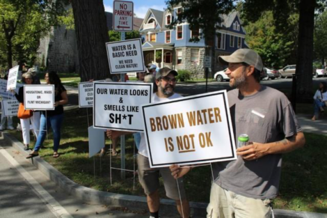 Select Board Chairman Stephen Bannon was at the protest. “I’m glad to see people who have this terrible water are getting out and letting their feelings be known,” Bannon said. “We want them to know that we are with them. I think it’s very frustrating that we have press releases that say everything is okay when it’s obvious that the water is not clear. We can argue about whether it is safe or dangerous, but anyway you look at it, this situation is frustrating.”