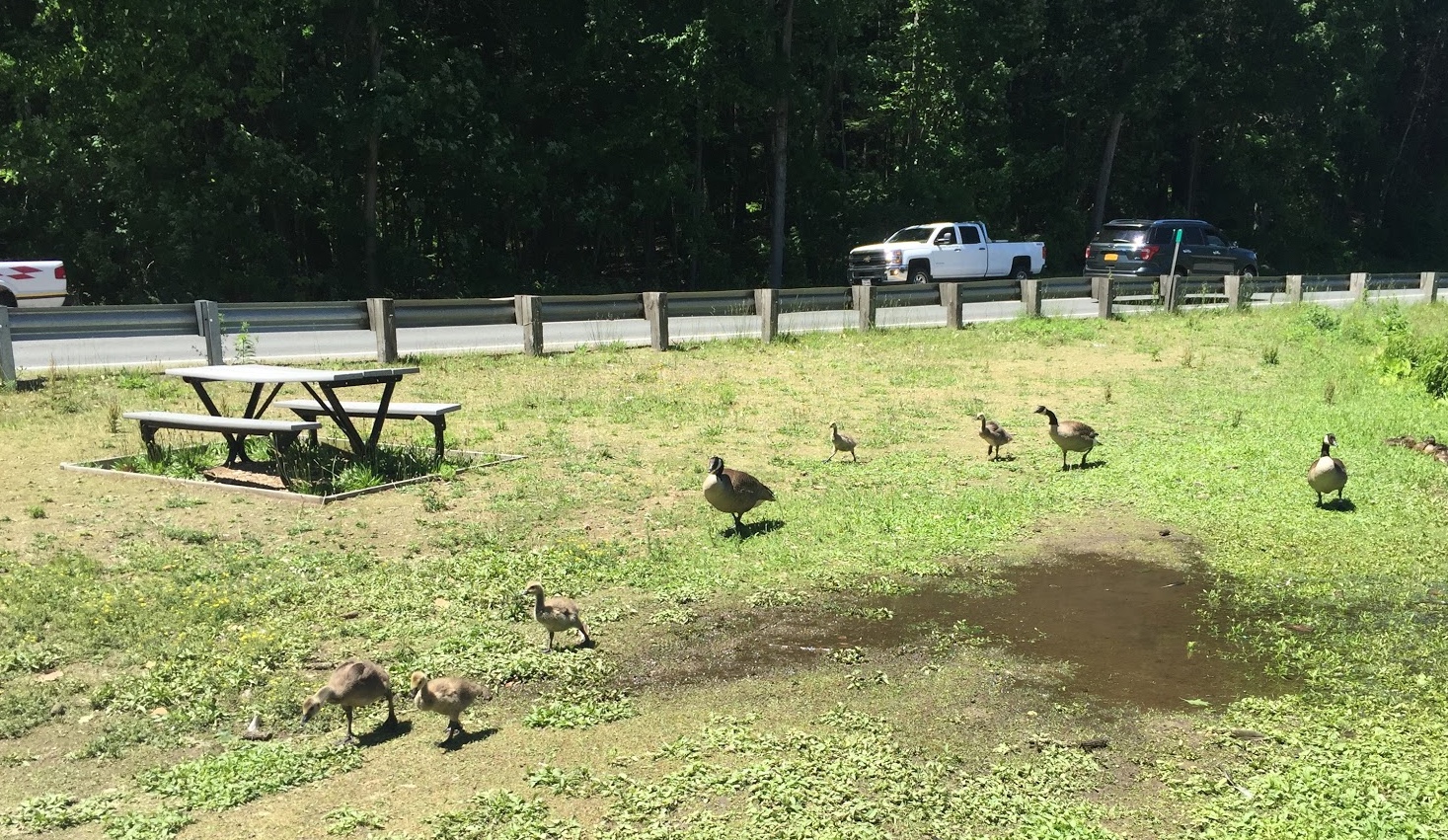 Goslings seen with goose walking close to the road and throughout the parking lot. Photo: Lily Abrahams