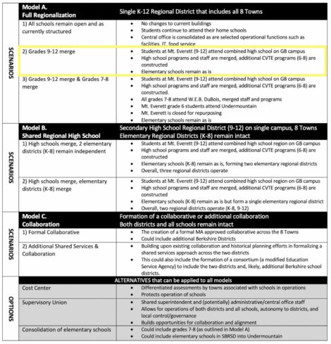 “It is very important that this group move forward with some sort of preferred option so that we can dig deeper and meaningfully engage the community about the potential impact of this,” said Berkshire Hills Superintendent Peter Dillon.