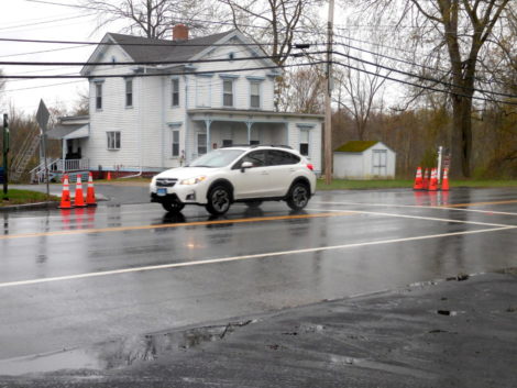 Seidl was headed to the library for a reception and was carrying refreshments, including coffee and donuts, but was forced to park on Route 7 and walk across the street because the driveway to the library was closed for repairs.