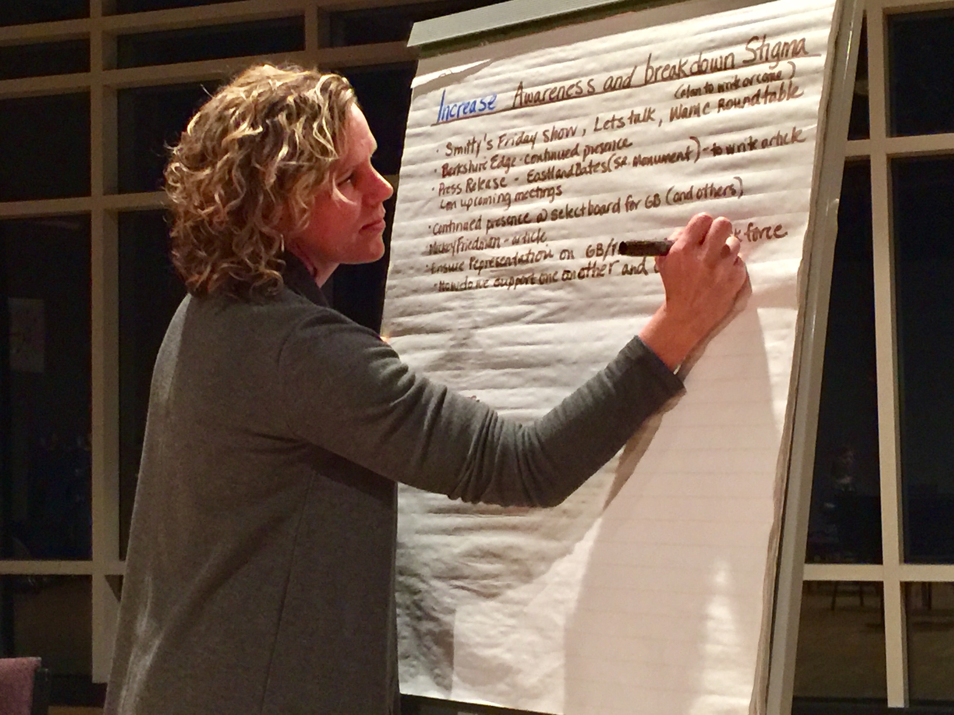 Some suggestions included regular radio and newspaper press, attention from local politicians, talking to high school students, and working on treatment options in South Berkshire County, since right now most recovering addicts must travel to Pittsfield for treatment.