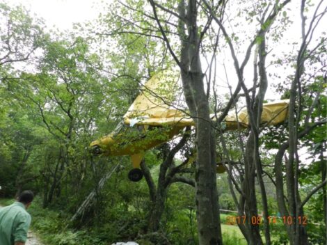 The following summer, in July 2011, Rick Solan, who became one of four partner-owners of the airport after Koladza’s death in 2004 but was still an American Airlines pilot, took a passenger on a flight in a 1958 Piper J3 Cub owned by airport co-owner Jim Jacobs. He lost engine power shortly after takeoff when the plane was 150 feet above the ground. He navigated the plane between several nearby houses and crashed into a yard, coming to rest in some trees less than a mile from the airport off Route 71.